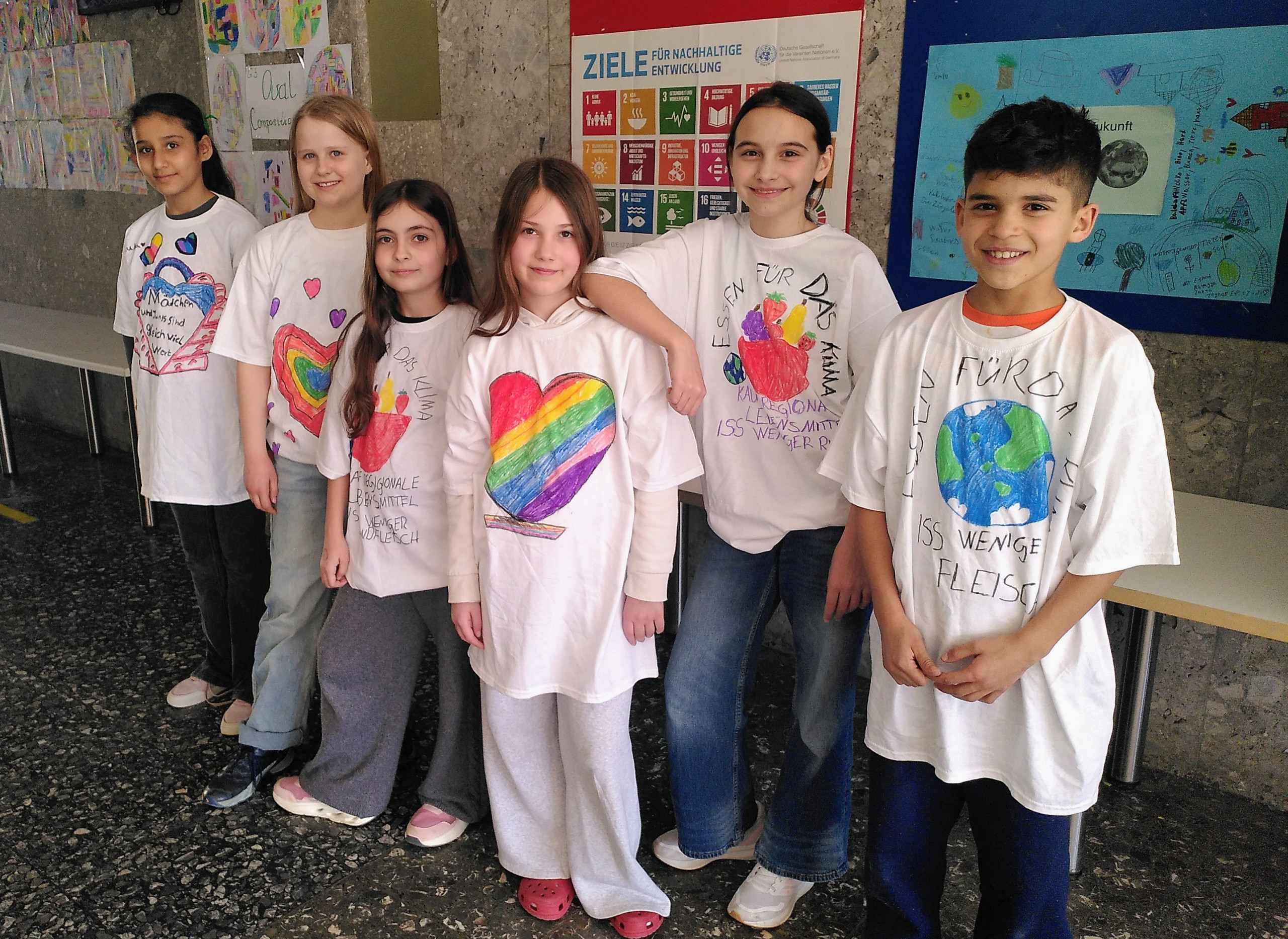 Um auf ihre Herzensthemen aufmerksam zu machen, haben sich die Gruppen „Essen für das Klima“ und „Geschlechtergleichheit“ für eine T-Shirt-Aktion entschieden. So möchten sie Ziele der Agenda 2030 der Vereinten Nationen bekannter machen.